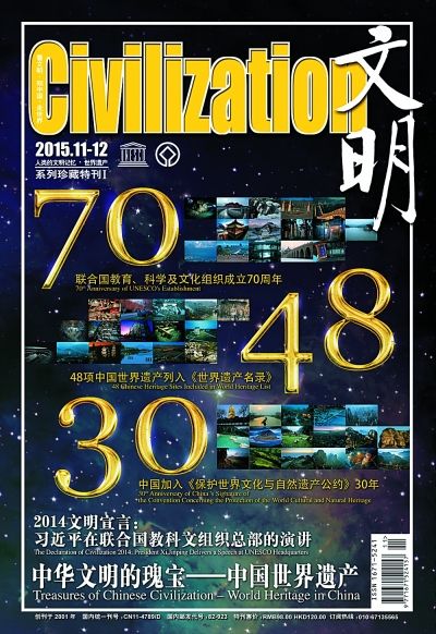 由《文明》杂志推出的《人类的文明记忆·世界遗产》系列特刊I《中华文明的瑰宝——中国世界遗产》成为大会指定唯一文化读本。这是世界最高文化会议平台70年来第一次展示以一个国家为主题内容的文化读本,实现了中国文化走上世界高端文化传播平台的突破。