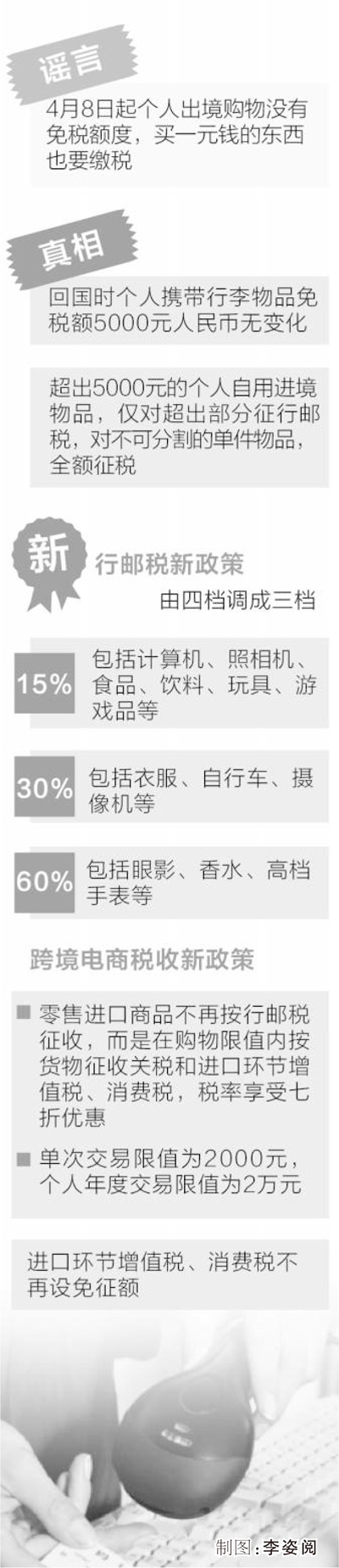 4月8日,我国跨境电子商务零售进口税收新政实施。没想到,一个针对跨境电商的税收政策,却掀起了阵阵涟漪,各种说法瞬间刷爆“朋友圈”。微信和网络上流传的一些个人出境购物的说法靠谱吗?记者第一时间采访了有关部门和专家。