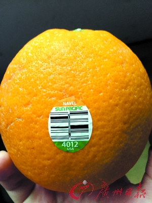 超市售卖的美国新奇士橙标签上代码为4012。