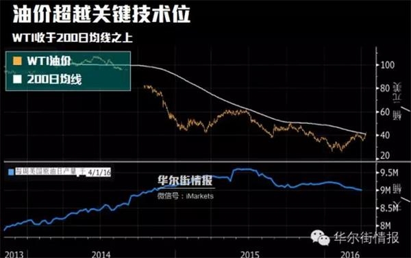 美国原油期货结算价自2014年7月以来首次高于200日均线
