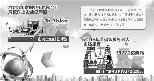 面对前所未有的产业发展机遇,本次博览会举办的人工智能产业发展论坛上,科大讯飞、华为、京东、TCL、美的、优必选科技、奥飞动漫深圳先进技术研究院等行业知名企业共同发表了《人工智能深圳宣言》。该宣言提出,探索政、产、学、研、用合作机制,推动人工智能核心技术创新与产业发展;制定人工智能产业发展标准,推动人工智能产业协同发展;打造共性支撑平台,构建人工智能产业生态;健全相关法律法规体系,引导形成符合人类发展的价值观。(经济日报记者 周 雷)