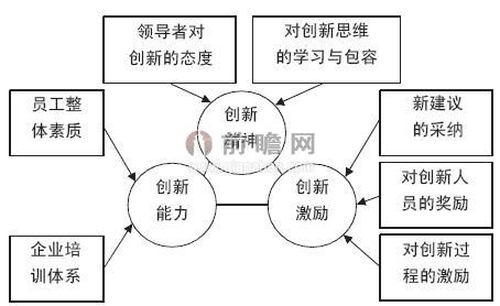 这里的员工是一个广泛的概念,包括企业家和普通员工,他们是企业各种经营活动的执行者,这些活动包括创新活动。员工对创新的推动因素包括:创新精神、创新能力和创新激励,如图所示,员工角度的创新动力是推动第三方医药物流企业服务创新的依托和载体。
