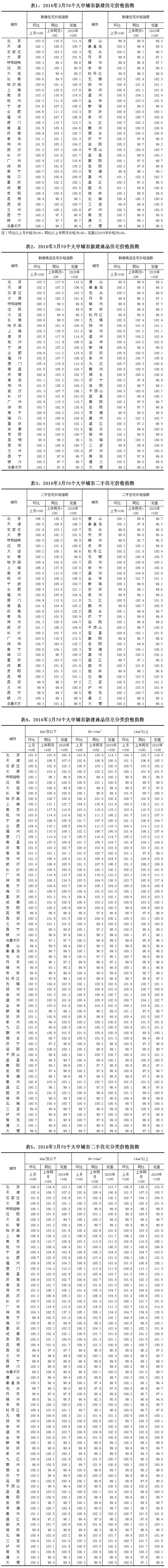 北京4月18日讯 据国家统计局网站消息,2016年3月份70个大中城市住宅销售价格变动情况,新建商品住宅与上月相比,70个大中城市中,价格下降的城市有8个,上涨的城市有62个。