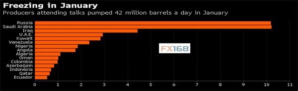 本周日(4月17日),主要产油国将齐聚卡塔尔首都多哈,讨论将原油产量冻结在今年1月水平,以稳定油价。此前俄罗斯、沙特、卡塔尔及委内瑞拉已在2月达成初步提议,并寻求更多产油国的加入。