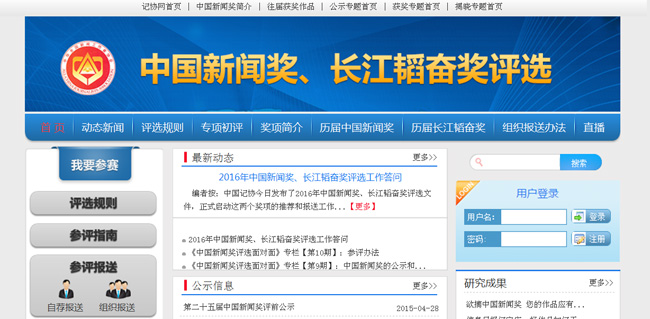 中国记协新闻评奖系统今日正式启用。参加中国新闻奖、长江韬奋奖评选的单位和个人,均可通过系统上传参评材料电子版,查询审核和评选进度。