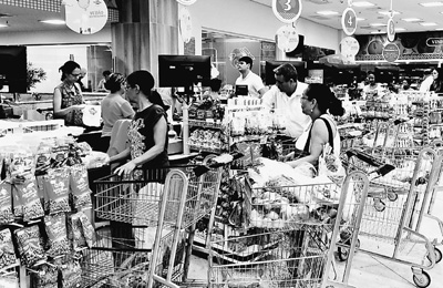 由于巴西通货膨胀攀升导致消费不振,民众购物更趋谨慎。图为在里约热内卢一家超市,当地民众在采购生活必需品。记者 颜 欢摄