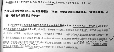 病人在接受检测DNA后,医生不能让患者电话查询检验结果,因为这样会失去病人拿药的机会。材料称,通过电话告诉病人化验结果意味着失去向病人解释的机会,也就意味着失去病人拿药的机会,应该以各种理由拒绝用电话告诉化验结果。例如说,“我们科室上班时间不让接电话”、“每天病人多,上班忙,走不开”等。一定要劝病人来这里拿化验报告,我们才能根据化验报告讲解危害性,使病人对病情产生重视,接受治疗。