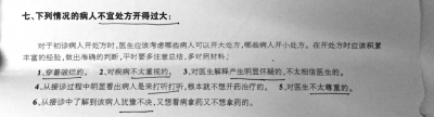 接下来的第五条称,病人已经在咱们医院做完化验结果,应注意做完哪些工作后才能开处方?答案写道,例如,简单地讲解服药的必要性,吃吃药、打打针那绝对不行。如果这样处理意味着前面的工作白做,因为这个环节工作没做好,病人可能会流失。