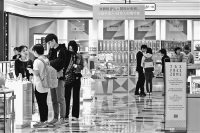 日本内阁府5月11日发布的初步统计报告显示,3月份景气一致指数为111.2,景气判断基调依然是“停滞”。图为消费者在位于日本东京银座购物广场的乐天免税店购物。人民视觉