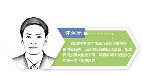 许召元:民间投资增速下调,仍是对前期高投资和去产能以及经济下行的正常反应,并没有出现新的重要变化。从行业看,民间投资增速下行并不局限于一两个具体领域,因此仍是对整个经济下行的内在调整。