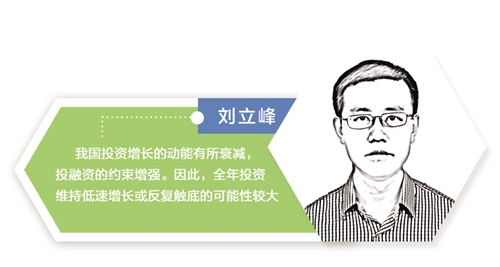 总体来看,我国投资增长的动能有所衰减,投融资的约束增强。因此,全年投资维持低速增长或反复触底的可能性较大。