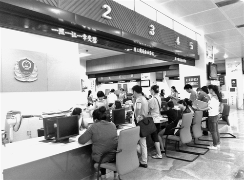 在海南政务服务中心大厅企业登记注册办理窗口,许多人正在排队等候办理手续。经济日报记者 何 伟摄