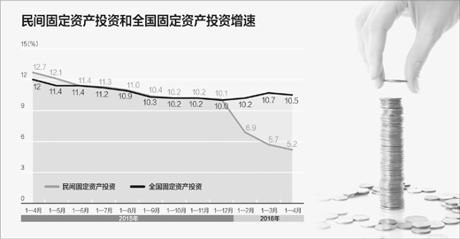 民间投资是稳增长、调结构、促就业的重要支撑力量。进入2016年,民间投资增速持续回落,自2012年有该统计数据以来首次低于全社会投资增速水平,颇为引人关注。民间投资怎么了?缘何增速持续放缓?怎样才能更快些呢?