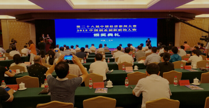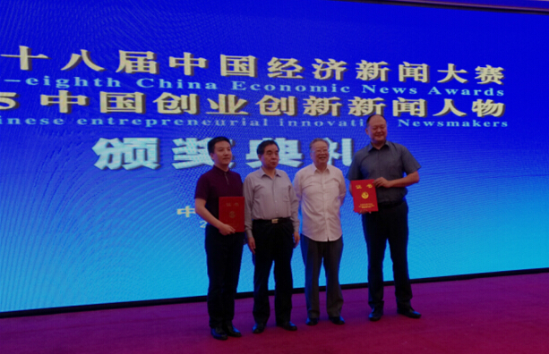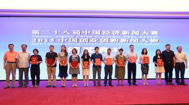 第十二届全国人民代表大会教育科学文化卫生委员会主任委员柳斌杰、第二十八届中国经济新闻大赛暨2015年度中国经济创业创新新闻人物活动评委会主任、人民日报原副总编辑张虎生为荣获新闻大赛特等奖作者颁奖