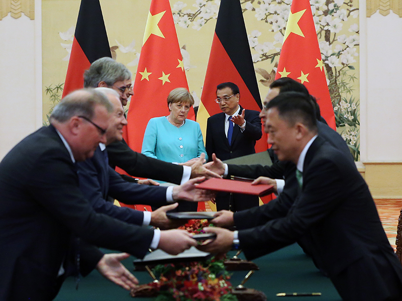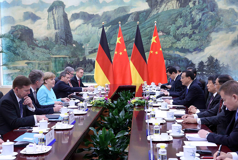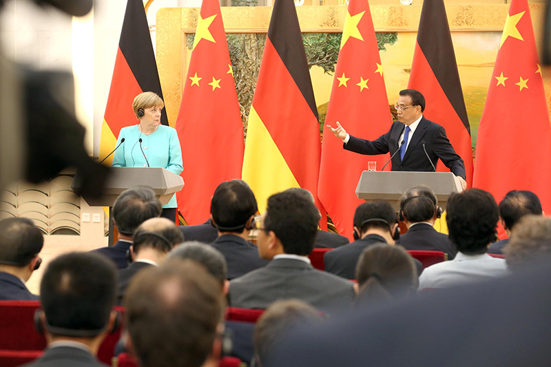 会谈结束后,两位总理共见记者时,中国和德国两位记者的提问同样聚焦在这一议题。李克强在回答中重申,中国是不是市场经济国家,这由中国的国情决定。中国推进市场化改革所取得的成就也已为世界公认。但履行《加入议定书》第15条承诺义务,包括中欧贸易摩擦,都是不同层面的问题,应该分开讨论。