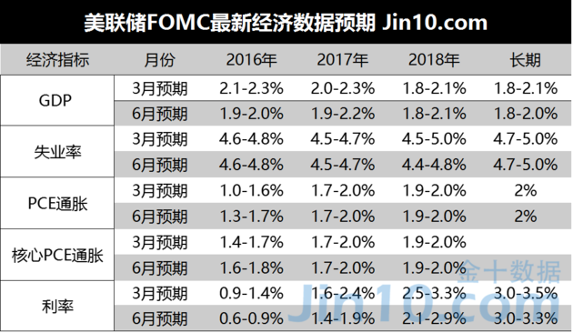5、FOMC将2016年GDP增速预期2.2%下调至2%。