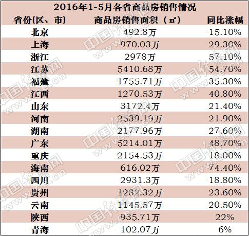 北京6月29日讯(王子威)近日,浙江、江苏、广东、北京、上海等全国17个省(区、市)相继公布了今年1-5月商品房开发投资和销售情况。据中国经济网记者统计,已公开数据的省份基本保持着较高速度的销售增长,其中6个省份前5月商品房销售面积增幅超过全国整体水平,海南省增幅达74.4%,为全国最高。