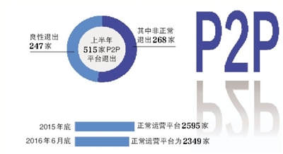 经历行业自净与监管风暴之后,不少平台选择良性退出。数据显示,2016年上半年累计停业及问题平台数量达到515家,其中选择通过停业、转型等良性退出方式的平台共有247家,而出现跑路、提现困难、经侦介入等非正常退出现象的平台为268家。