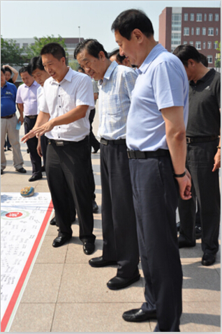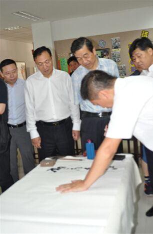 为贯彻国家教育部《关于书法教育的有关要求》,几年来沈阳市浑南白塔小学结合校情实际,将“写好中国字,做好中国人”作为书法教育的指导思想,扎实开展工作,使孩子们在学习中增强中华民族文化,在写字中传承中国精神。当苏士澍主席看到同学们撰写的数十米长卷书法时,高兴的说:“通过书法,文字让孩子们了解掌握中国文化之精髓,通过熟知中国文化成为优秀接班人,特别要倡导‘写好中国字,做好中国人’让孩子们从小为生在中国而感到骄傲和自豪”。