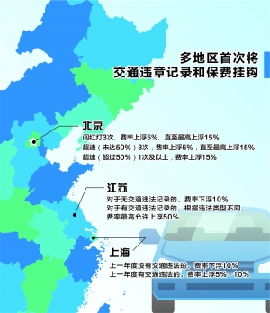 值得注意的是,多地区公布的商业车险细则首次将交通违章记录和保费系数挂钩。