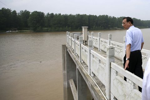 飞机抵达安徽阜阳后,李克强换乘汽车马不停蹄,于上午10:40赶到被称为“千里淮河第一闸”的王家坝闸,察看淮河防汛。闸内的濛洼蓄洪区建于1951年,建成后曾15次滞蓄洪水,削减淮河干流洪峰。