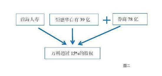 根据记者获得的资料,这一阶段钜盛华以自有资金约39亿元,以1:2的杠杆撬动券商资金约78亿元,购买万科股票。这期间的杠杆主要是通过与中信、国信、银河等券商开展融资融券和收益互换实现的。至此,前海人寿和钜盛华持股万科比例合计超过15%。