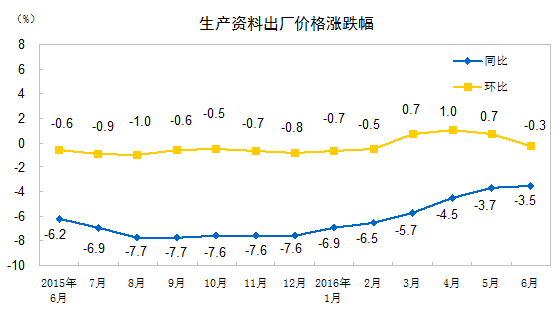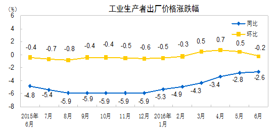 2016 年 6 月工业生产者价格主要数据