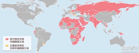 表态支持中国南海立场的官方、主要政党(图片来源:观察者网)