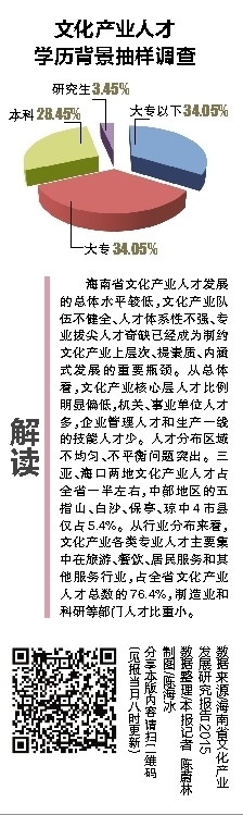 《报告》认为,海南文化产业发展路径要紧跟“互联网+”和“文化+”的脉搏,从时代和产业新的变迁中寻找未来的定位和发力点:要以“文化+”为推动力,把文化元素融入海南经济社会发展各个领域,用文化内涵和品质包装海南文化产业发展,把文化力量融入农业、旅游、工艺品制造、会展业等领域;在“互联网+”的引领下,创新文化产业发展业态,用互联网思维重构企业和产业的空间和业态布局,发展新兴文化产业,特别是要把互联网思维融入文化产业发展,在新兴文化产业发展上实现后发赶超,促进文化科技企业、游戏娱乐产业和文化创意及智慧旅游等产业的发展。(记者陈蔚林实习生陈卓斌)
