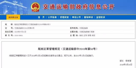 每 日经济新闻(ID:nbdnews)记者注意到,交通运输部今日发布航班正常管理规定》(以下简称《规定》),根据规定,由于天气、突发事件、空中交通管 制、安检以及旅客等非承运人原因,造成航班在始发地出港延误或者取消,承运人应当协助旅客安排餐食和住宿,费用由旅客自理。规定自2017年1月1日起实 施。