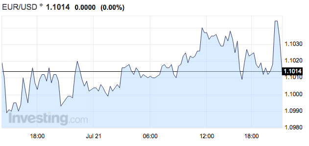 决议公布后,欧元对美元小幅走升,截至北京时间21:00记者发稿,欧元/美元报1.104。