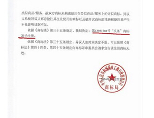 经历了商标异议答辩,近日,成都这家公司的负责人杨涛收到了来自国家工商行政管理总局商标局6月22日作出的决定书:准予其注册。未来,“头条”可能不只是存在于互联网中,还有可能是食品。