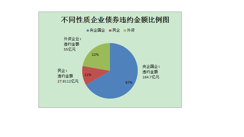 值得注意的是,和过去两年不同的是,今年信用债市场的“央企信仰”、“国企信仰”纷纷被打破。据《第一财经日报》记者统计,在今年的违约事件中,涉及民企9家、金额28亿元;央企子公司和地方国企6家,但是金额却达164.7亿元之多,占违约总金额的66.5%;此外,还有山东山水水泥、南京雨润两家外商独资企业,以及保定天威英利新能源公司这一外资控股企业。
