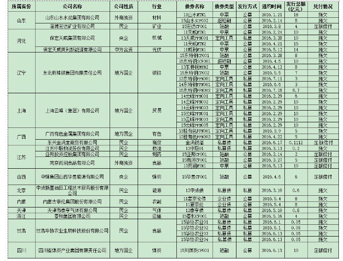 今年4月6日,央企子公司的6亿短融“15华昱CP001”未按期对付,成为煤炭行业首例违约。去年10月,央企债“10中钢债”成为钢铁企业首例,今年的东北特钢是辽宁省的第二大国企,7只债券违约,至今无解。