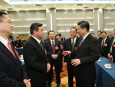 2016年3月4日下午,中共中央总书记、国家主席、中央军委主席习近平看望参加全国政协十二届四次会议的民建、工商联委员,并参加联组会,听取委员们意见和建议。新华社记者兰红光摄