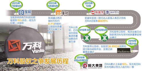 7月21日,万科发布公告称,拟投资38.89亿元和黑石成立联合收购平台,交易已获董事会通过。市场分析人士认为,万科的新方案是与黑石基金成立“联合收购平台”,共同取得黑石系的商业地产公司一定的股权,这一方案或将成为对宝能系的反击。