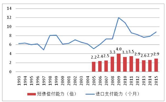 这主要由两大原因决定。首先,中国政府债务结构较合理。一是政府债务绝大部分为内债,外债占比很低(2014年我国外债仅占1%,美国43%);二是我国短期债务占较低(2014年底我国中央政府债务中的短期债务占比为10.1%,而同期美国短期国债和机构债占比达到 31.3%)。