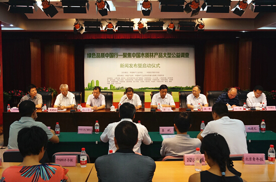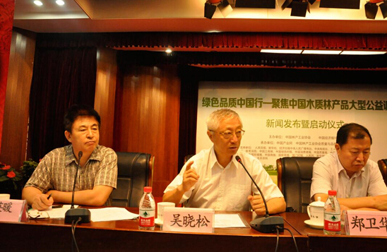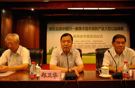 中国产业网、中国林产工业协会网联合讯“木质林产品产业具有里程碑意义的活动”——“绿色品质中国行——聚焦中国木质林产品”新闻发布会8月21日在北京举行。国家林业局科技委副主任、林业部原副部长蔡延松、中国记协党组副书记潘岗、国家质检总局产品质量监督司巡视员郑卫华、中国林产工业协会首席顾问,国家林业局计财司原副司长孙建、中国林产工业协会首席顾问,国家发改委农经司原副司长吴晓松、中国林产工业协会秘书长石峰、中国经济报刊协会副会长兼秘书长胡英暖、中国林产工业协会副会长,国家人造板与木竹制品质检中心主任吕斌、中国林产工业协会副会长兼国际维权工作委员会主任吴盛富、大自然家居、升达林业等中国林产工业龙头企业代表、人民日报、新华社、经济日报、人民网、新华网、中国经济网、中国绿色时报等四十余家权威媒体的领导和记者参加新闻发布会。