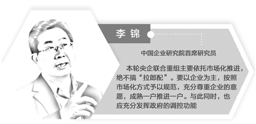 李锦:央企重组加速与推进供给侧结构性改革有着重要关系。中央要求,国有企业要在推进供给侧结构性改革中发挥带动作用。倘若只是把类型相同的两个或多个品牌合并在一起,只是改革的“初级半成品”,还算不上真正意义上的改革。可喜的是,当前央企加速重组除了品牌之外,基本均牵涉到体制机制改革和深层次产权改革。可以预见,今后一段时期,以强强联合为领头,兼并重组、专业化整合、拆分重组、内部资源整合、并购重组、混合参股、关停并转、托管与混合经济等多种方式的组合案例将持续涌现。当然,央企数量的减少,并不意味着企业影响力的降低。国务院国资委成立13年来,央企由196家减至105家,而资产规模却扩大了7倍。做好质量数量的“加减法”,才能更好地推动资源整合、行业调整。
