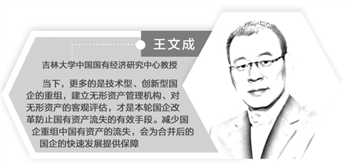 当下,更多的是技术型、创新型国企的重组,建立无形资产管理机构、对无形资产的客观评估,是本轮国企改革防止国有资产流失的有效手段。减少国企重组中国有资产的流失,将为合并后国企的快速发展提供保障。