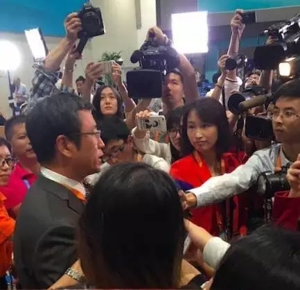 正在码字中,突然看见人群齐刷刷向一个方向涌去,原来是美国国务卿约翰·福布斯·克里出现在了新闻中心,大伙的反应力都是杠杠的!