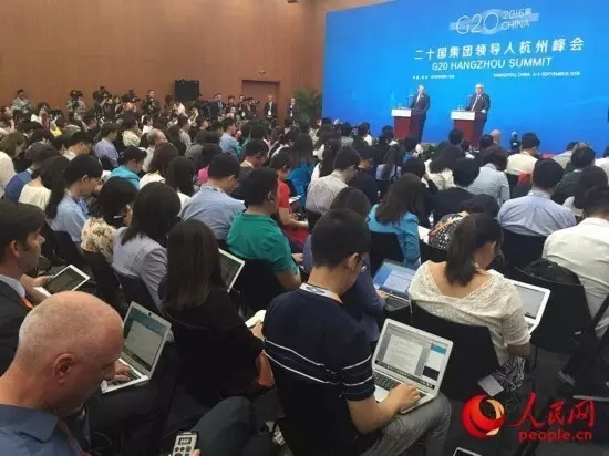 主持人上台,微笑着用英语说:“我们今天的发布会全程用英语进行,希望你们都使出洪荒之力。”在一阵笑声中,现场紧张的气氛瞬间轻松下来。很多国内媒体记者开始埋头准备,对着本子做起了翻译,这成了发布会开始前一道独特的风景。为了这次G20会议的采访,不少同行做了很多功课,提前大半年苦练英语口语。