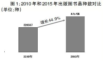 图1中,从品种数来看,“十二五”期间,全国出版图书品种数大幅增长,从“十一五”期末(2010年)的32.8万种,增长到“十二五”期末(2015年)的47.6万种,5年增加了近15万种,增长了44.9%。