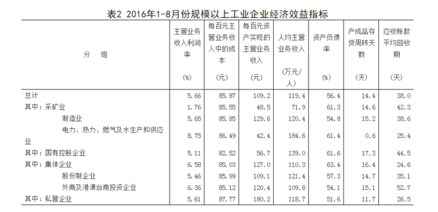 ——国家统计局工业司何平博士解读2016年1-8月份工业企业利润数据
