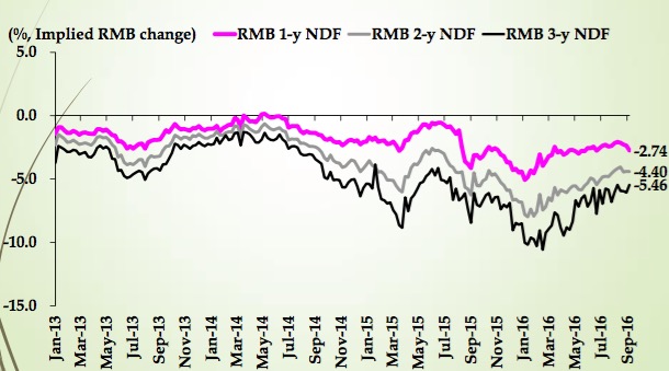 人民币1~3年期远期外汇交易显示的汇率走势|财大高等研究院