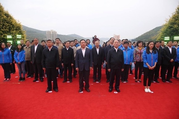 9月29日下午,陕西省吴起县下起了淅淅沥沥的小雨,在中央红军长征胜利纪念园中,一支庄重严肃的队伍集结在中央红军长征胜利纪念碑前。他们是中央网信办副主任、国家网信办副主任任贤良,中央党史研究室副主任高永中,陕西省委常委、延安市委书记徐新荣,陕西省、延安市、吴起县的相关负责同志,长征沿线15个省区市网信办的相关负责同志,以及来自43家网络媒体的59名编辑记者。他们向在80年前长征途中牺牲的全体红军烈士敬献花篮,三鞠躬,寄托哀思。
