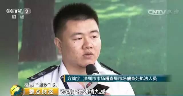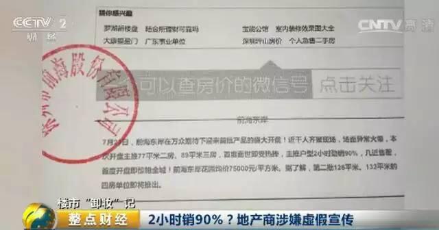 深圳市市场稽查局市场稽查处执法人员 方灿宇:开盘当天,他就对外发布了消息,说两小时劲销九成,引爆全城之类的说法,下面配了些图片, 包括一些购房者露出一些喜悦的笑容,说好不容易把房子买下来,这样孩子的学位有着落了,做这样的宣传一定程度上造成购房的恐慌,存在虚假宣传的情况。
