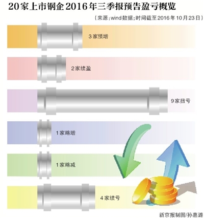 记者查询Wind看到,目前已有20家上市钢企披露三季度业绩情况,其中3家预增,2家续盈,9家扭亏,1家略增,1家略减,虽有4家续亏,但亏损额也在减少。