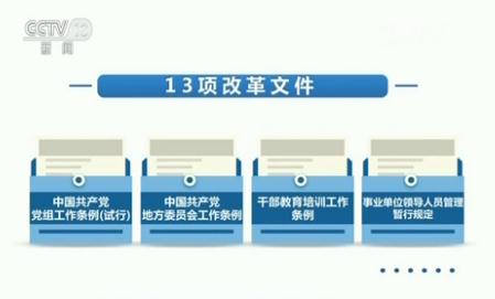 另外,为了深化党的制度建设改革,十八大以来,党中央还专门出台了《中国共产党党组工作条例(试行)》、《中国共产党地方委员会工作条例》、《干部教育培训工作条例》、《事业单位领导人员管理暂行规定》等13项党的制度建设改革文件。并且在实行的过程中,各地区各部门结合实际,还相继推出了一批改革措施,重视破解难题,制定实施《推进领导干部能上能下若干规定(试行)》,着力解决干部能上不能下问题。