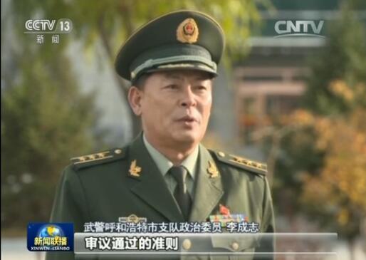 武警呼和浩特市支队政治委员李成志:全会审议通过的准则,修订的条例,进一步体现了党中央坚定不移推进全面从严治党的坚强决心,是我们党员共同心声,让我们党员知道“红线”在哪里,规矩是什么。
